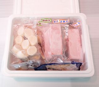 魚音では、セット商品などのセット毎の包装や、個別の化粧箱包装などは基本的には行っておりません。ご注文頂いた商品は発泡スチロールの箱にまとめて、ドライアイスを入れてお届けしております。